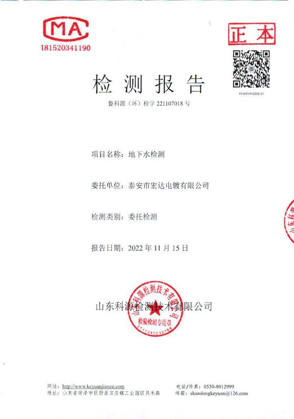 地下水22年下半年-泰安市宏達(dá)電鍍有限公司 2022-12-10 本文被閱讀 605 次
